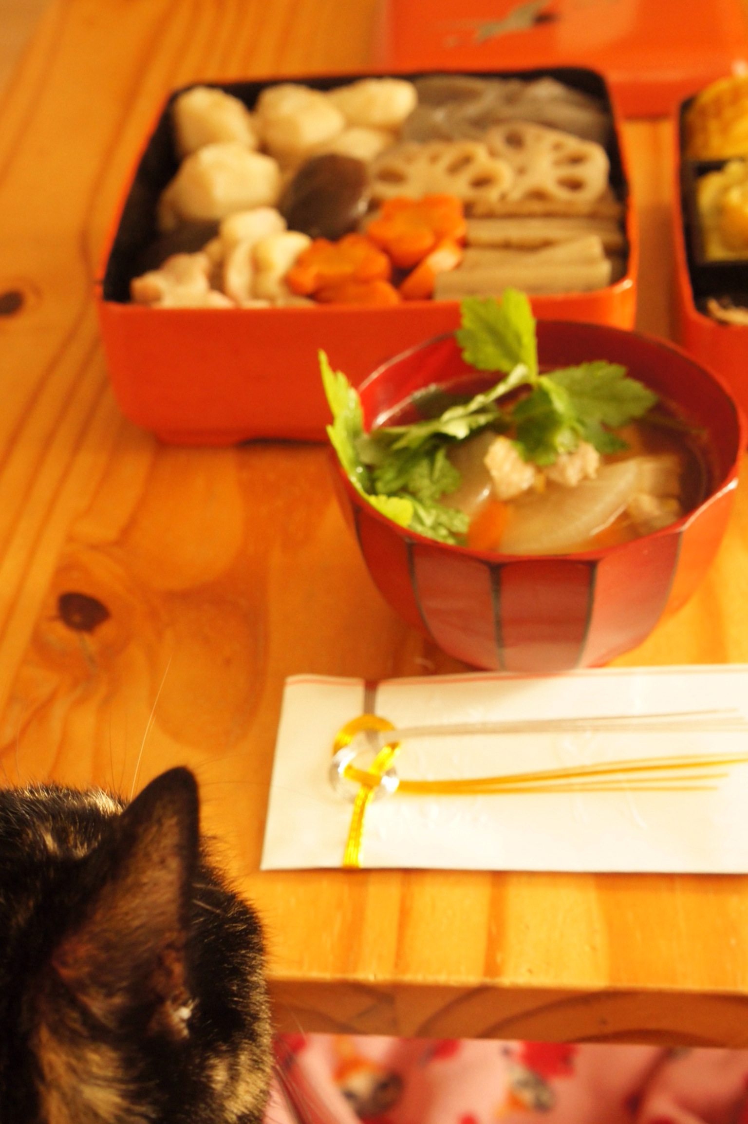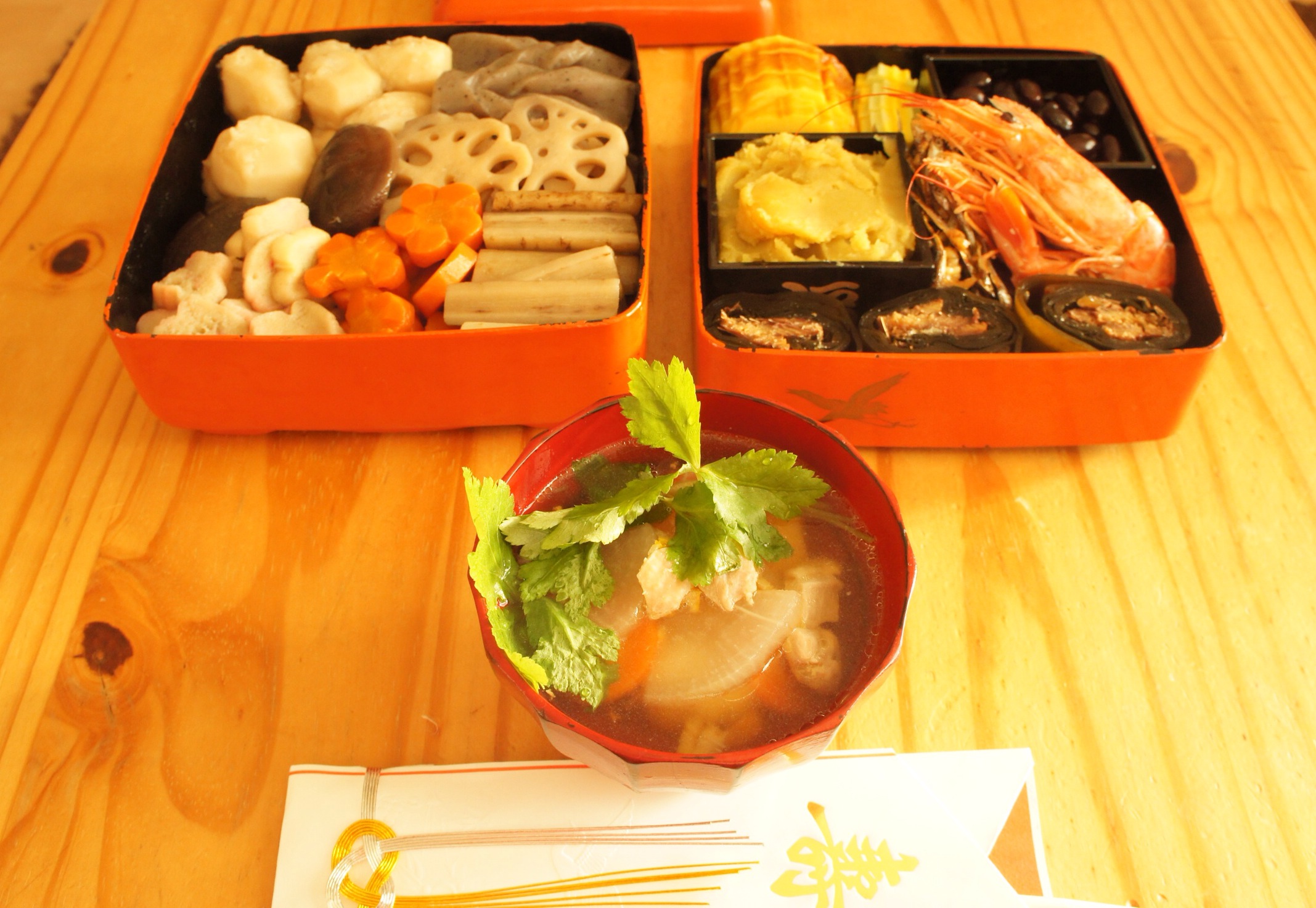 Kitchen2015.01.01 2016.01.01 sazaby あけましておめでとう! 今年も作ってみましたおせち料理。年末に小田原の友達が鈴廣の伊達巻やらを買ってきてくれた!あと昆布巻きは断念して市販だけど、それ以外はほぼ作ったよ!伊達巻昆布巻きは買うがイイね。 そしてビビも席につく。さすがビビは行儀が良い! 共有:クリックして Twitter で共有 (新しいウィンドウで開きます)Facebook で共有するにはクリックしてください (新しいウィンドウで開きます) 関連 コメントを残す コメントをキャンセルメールアドレスが公開されることはありません。 * が付いている欄は必須項目ですコメント * 名前 * メール * サイト 上に表示された文字を入力してください。 新しいコメントをメールで通知 新しい投稿をメールで受け取る Δ