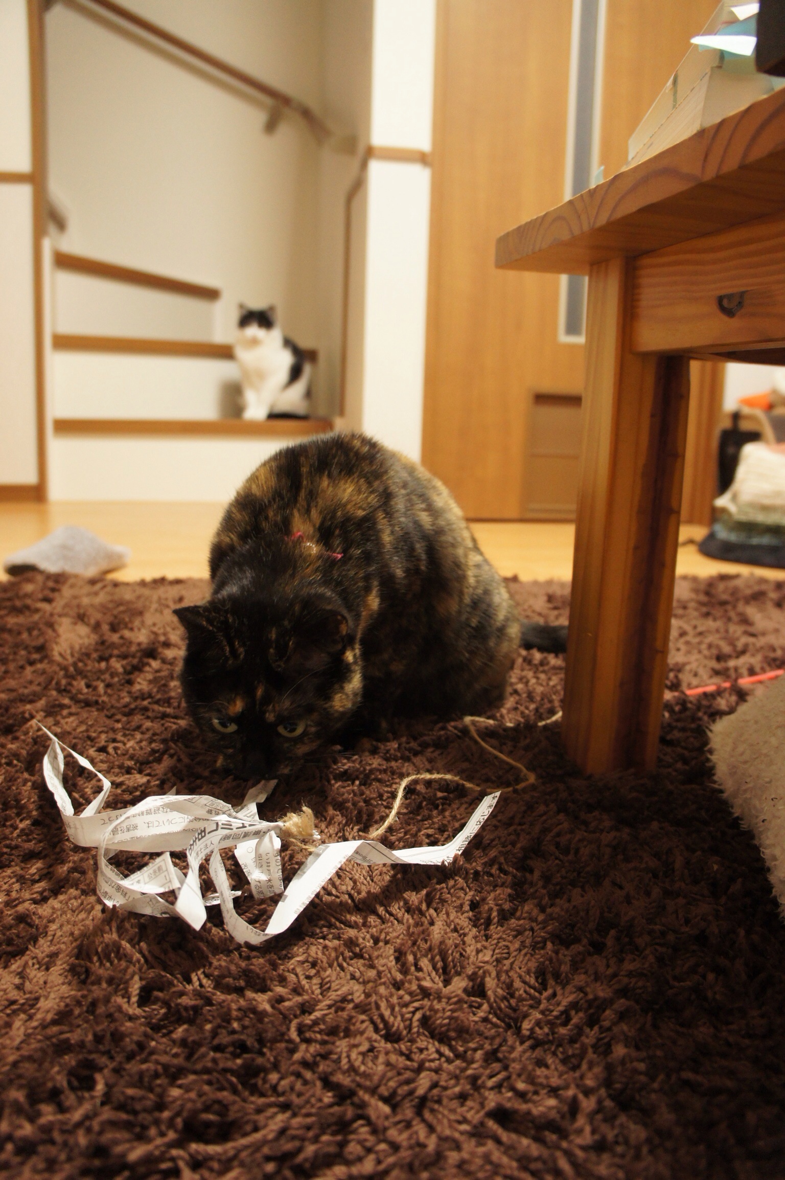 Bibi2015.01.27 sazaby 手づくりおもちゃ 最近色々なおもちゃが飽きてきてるビビ様。また買うのもなんだし、極力お金がかからないおもちゃ手づくりした!紙を長めの短冊状にして、まとめて麻紐で結んで、壊れたじゃらし棒にくくりつけて振り回す!紙がカサカサいうし、紙なら食べても問題ないし、ビビはこれで遊んで!って持ってくるし、ナイスじゃん! 共有:クリックして Twitter で共有 (新しいウィンドウで開きます)Facebook で共有するにはクリックしてください (新しいウィンドウで開きます) 関連 コメントを残す コメントをキャンセルメールアドレスが公開されることはありません。 * が付いている欄は必須項目ですコメント * 名前 * メール * サイト 上に表示された文字を入力してください。 新しいコメントをメールで通知 新しい投稿をメールで受け取る Δ