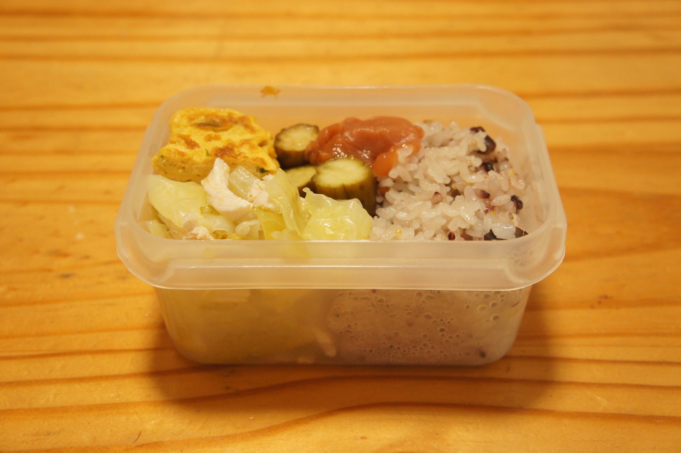 Bento2015.07.16 sazaby キャベツととりササミのマリネ弁当 梅雨だからって訳じゃないけど酢の物料理が多いお弁当。 昨日のお弁当にも入れたけど、キャベツととりササミのマリネ。キャベツととりササミを茹でて、フレンチドレッシング的な物に蜂蜜を入れて和えるだけ。作り置きにもイイよ。 キャベツととりササミのマリネ 小葱入り卵焼き きゅうりのピクルス 梅干し 雑穀米 共有:クリックして Twitter で共有 (新しいウィンドウで開きます)Facebook で共有するにはクリックしてください (新しいウィンドウで開きます) 関連 コメントを残す コメントをキャンセルメールアドレスが公開されることはありません。 * が付いている欄は必須項目ですコメント * 名前 * メール * サイト 上に表示された文字を入力してください。 新しいコメントをメールで通知 新しい投稿をメールで受け取る Δ