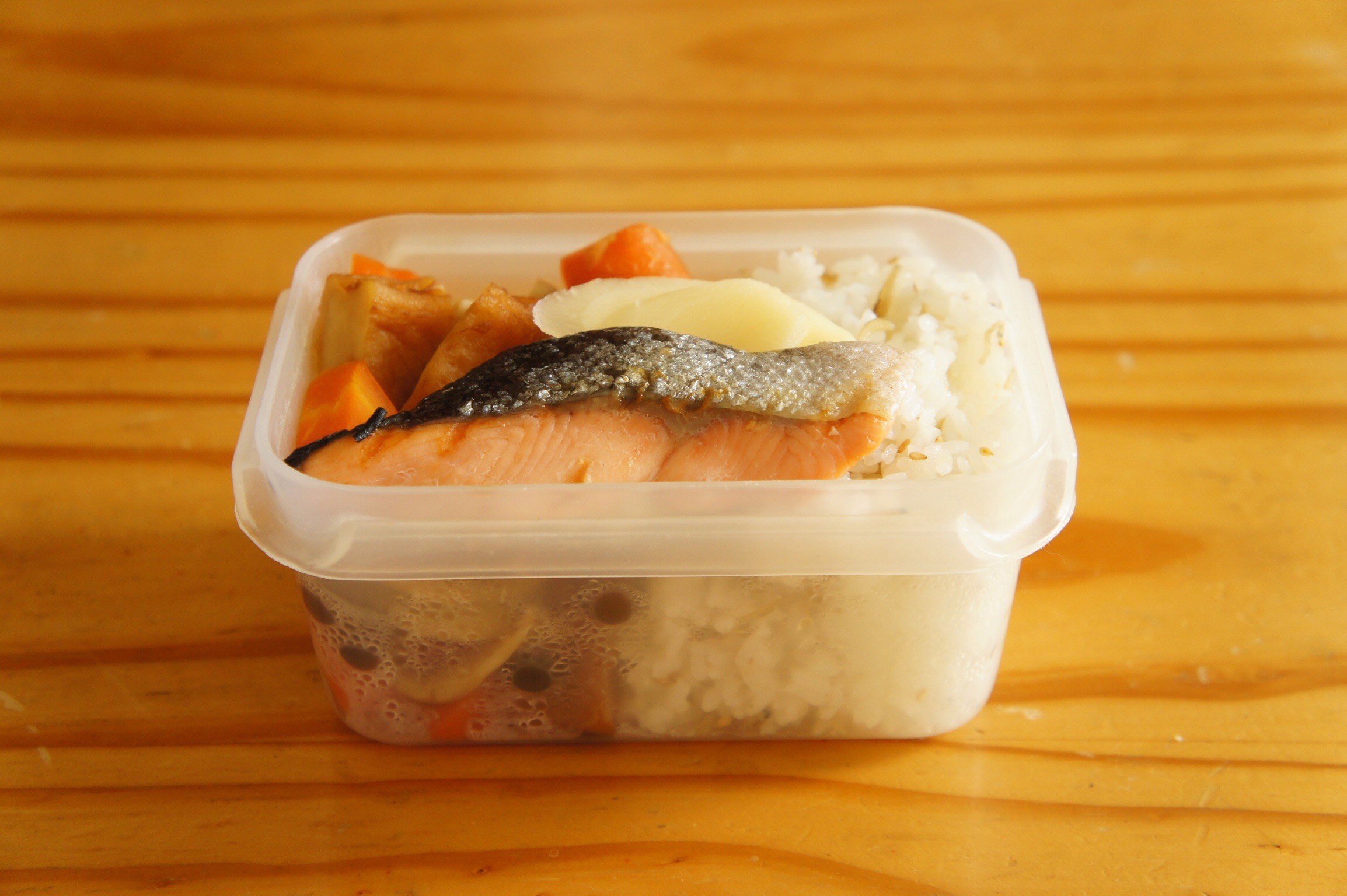 Bento2015.10.06 2015.10.26 sazaby 焼き鮭と煮物弁当 煮物は昨日の夜に途中まで煮ておいて、ダシと酒とミリンとお砂糖を加えおく。そして朝、醤油と塩を加えて完全に煮るという手法。 にんじんとエリンギとしめじとさつま揚げの煮物 塩鮭の焼いたの ちりめん山椒の混ぜご飯 新生姜 共有:クリックして Twitter で共有 (新しいウィンドウで開きます)Facebook で共有するにはクリックしてください (新しいウィンドウで開きます) 関連 コメントを残す コメントをキャンセルメールアドレスが公開されることはありません。 * が付いている欄は必須項目ですコメント * 名前 * メール * サイト 上に表示された文字を入力してください。 新しいコメントをメールで通知 新しい投稿をメールで受け取る Δ