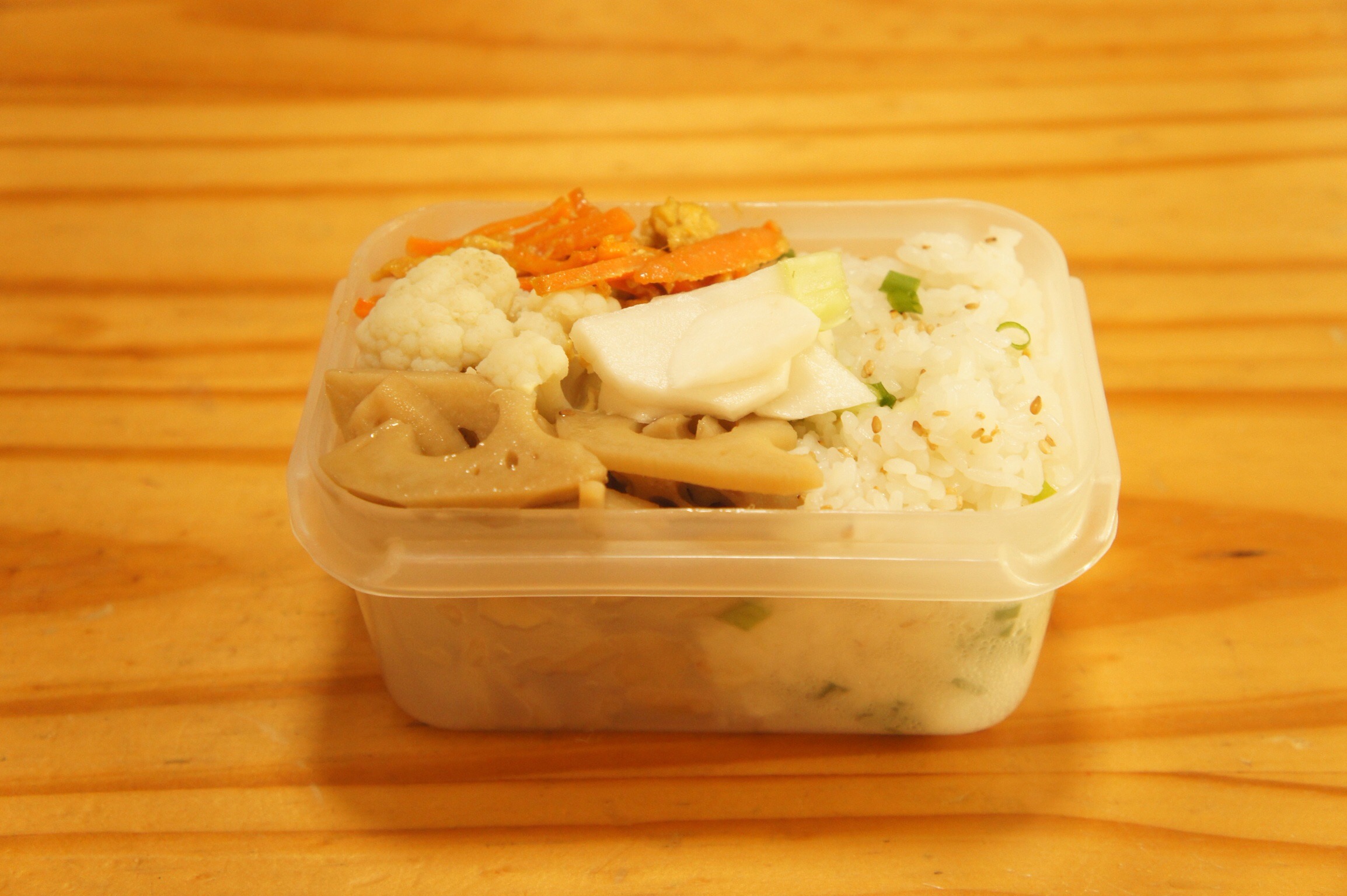 Bento2015.11.06 sazaby にんじんと卵のスクランブル弁当 カリフラワーは昨日の夜、歯を磨きながら茹でた。朝茹でるより、夜のながら茹でとか、いいよね。 にんじんと卵のスクランブル カリフラワーの茹でたの ハスのきんぴら かぶの塩漬け ゴマと小葱の混ぜご飯 共有:クリックして Twitter で共有 (新しいウィンドウで開きます)Facebook で共有するにはクリックしてください (新しいウィンドウで開きます) 関連 コメントを残す コメントをキャンセルメールアドレスが公開されることはありません。 * が付いている欄は必須項目ですコメント * 名前 * メール * サイト 上に表示された文字を入力してください。 新しいコメントをメールで通知 新しい投稿をメールで受け取る Δ