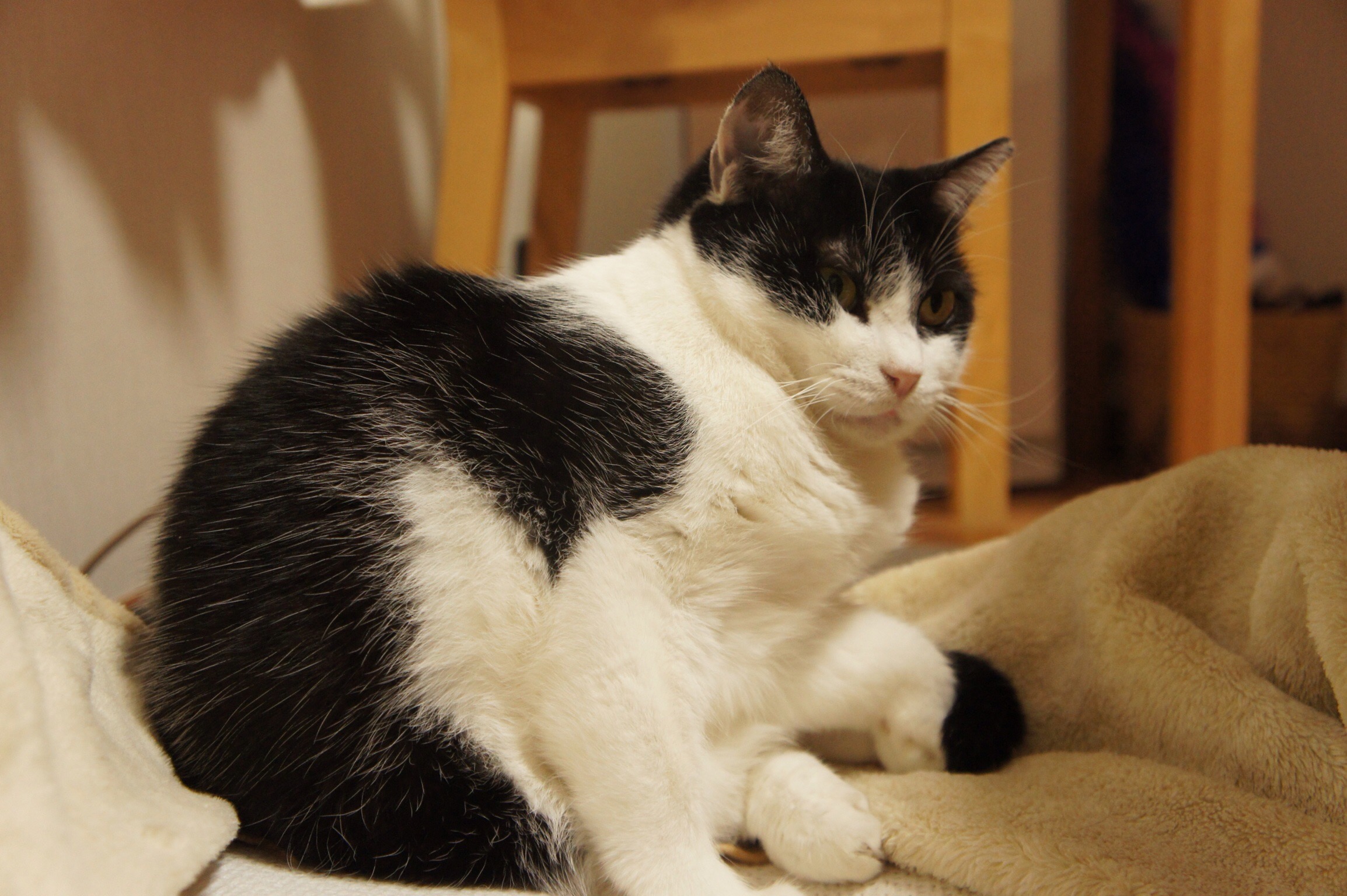 そして、ついに前足の一本だけだけど、切れた!その時のハレちゃんのいやーな表情。ハレちゃんって元野良の割に攻撃的じゃなくて、おっとりしてて、シャーもしない。ハレちゃんいい子