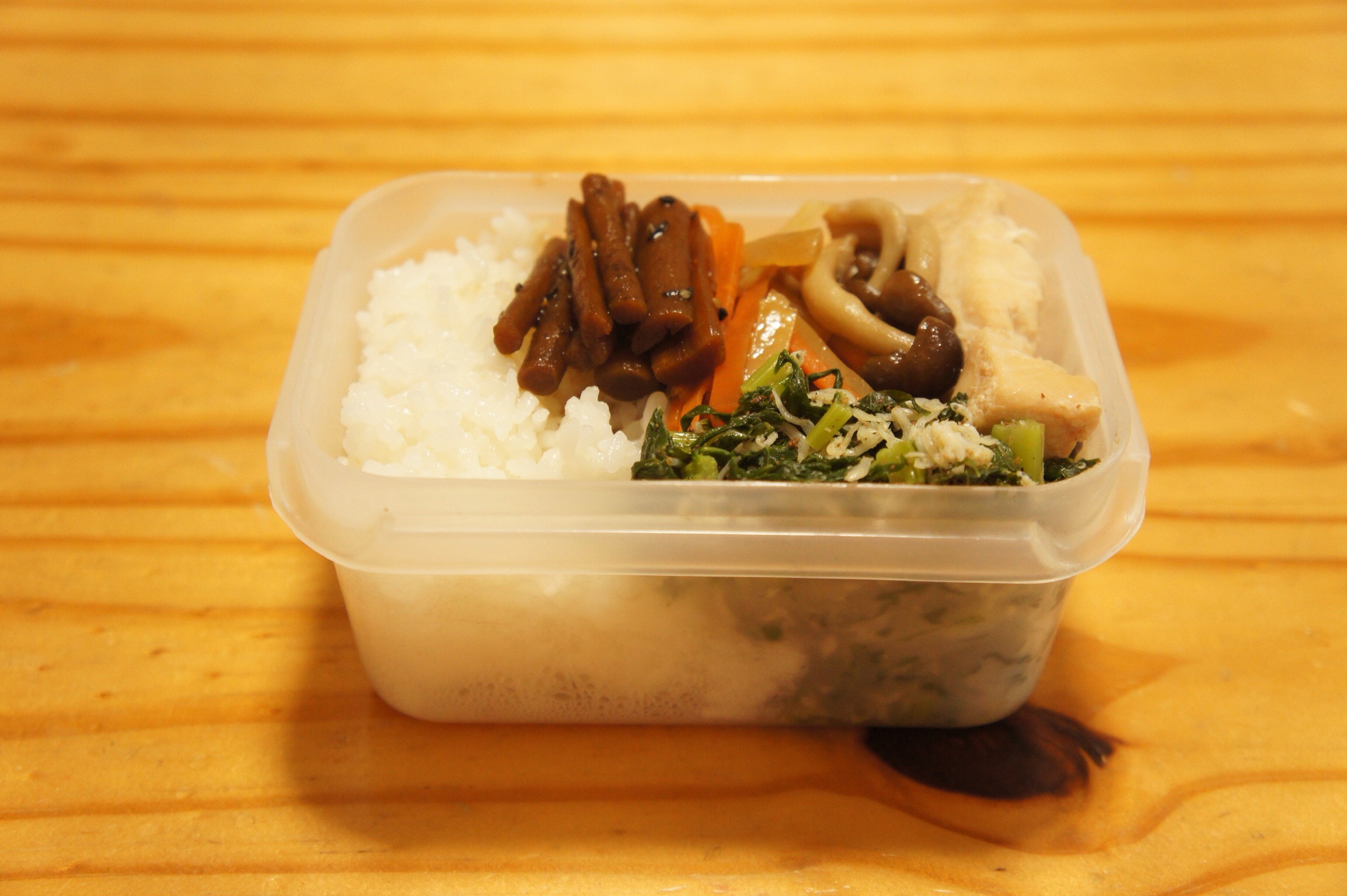 Bento2015.12.17 sazaby 鶏ムネ肉としめじの煮物弁当 鶏ムネ肉としめじを適当に麺つゆみりん酒で煮た。鶏ムネ肉には下味として酒とお醤油とみりんを揉みこんでみたけど、どーなんだろう? 鶏ムネ肉としめじの煮物 大根の葉のちりめん山椒 大根の皮のきんぴら 黒ごまゴボウ 新米 共有:クリックして Twitter で共有 (新しいウィンドウで開きます)Facebook で共有するにはクリックしてください (新しいウィンドウで開きます) 関連 コメントを残す コメントをキャンセルメールアドレスが公開されることはありません。 * が付いている欄は必須項目ですコメント * 名前 * メール * サイト 上に表示された文字を入力してください。 新しいコメントをメールで通知 新しい投稿をメールで受け取る Δ