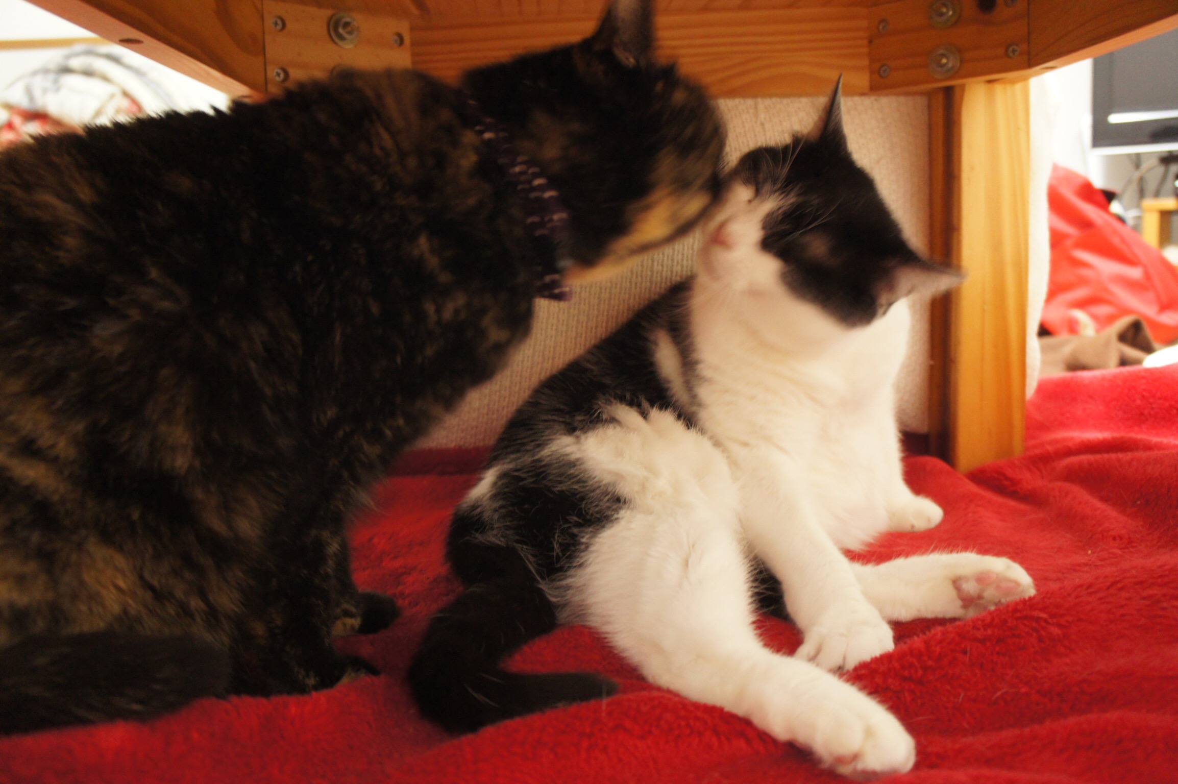 Bibi2016.02.07 sazaby おくつろぎハレちゃんとなかよしビビ 人間のすぐ近くでくつろぎ体勢のハレちゃん。とても珍しい。最近飼い猫の自覚が出てきた気がする。 ビビの方からからハレちゃんをグルーミングするのも珍しい。 共有:クリックして Twitter で共有 (新しいウィンドウで開きます)Facebook で共有するにはクリックしてください (新しいウィンドウで開きます) 関連 コメントを残す コメントをキャンセルメールアドレスが公開されることはありません。 * が付いている欄は必須項目ですコメント * 名前 * メール * サイト 上に表示された文字を入力してください。 新しいコメントをメールで通知 新しい投稿をメールで受け取る Δ