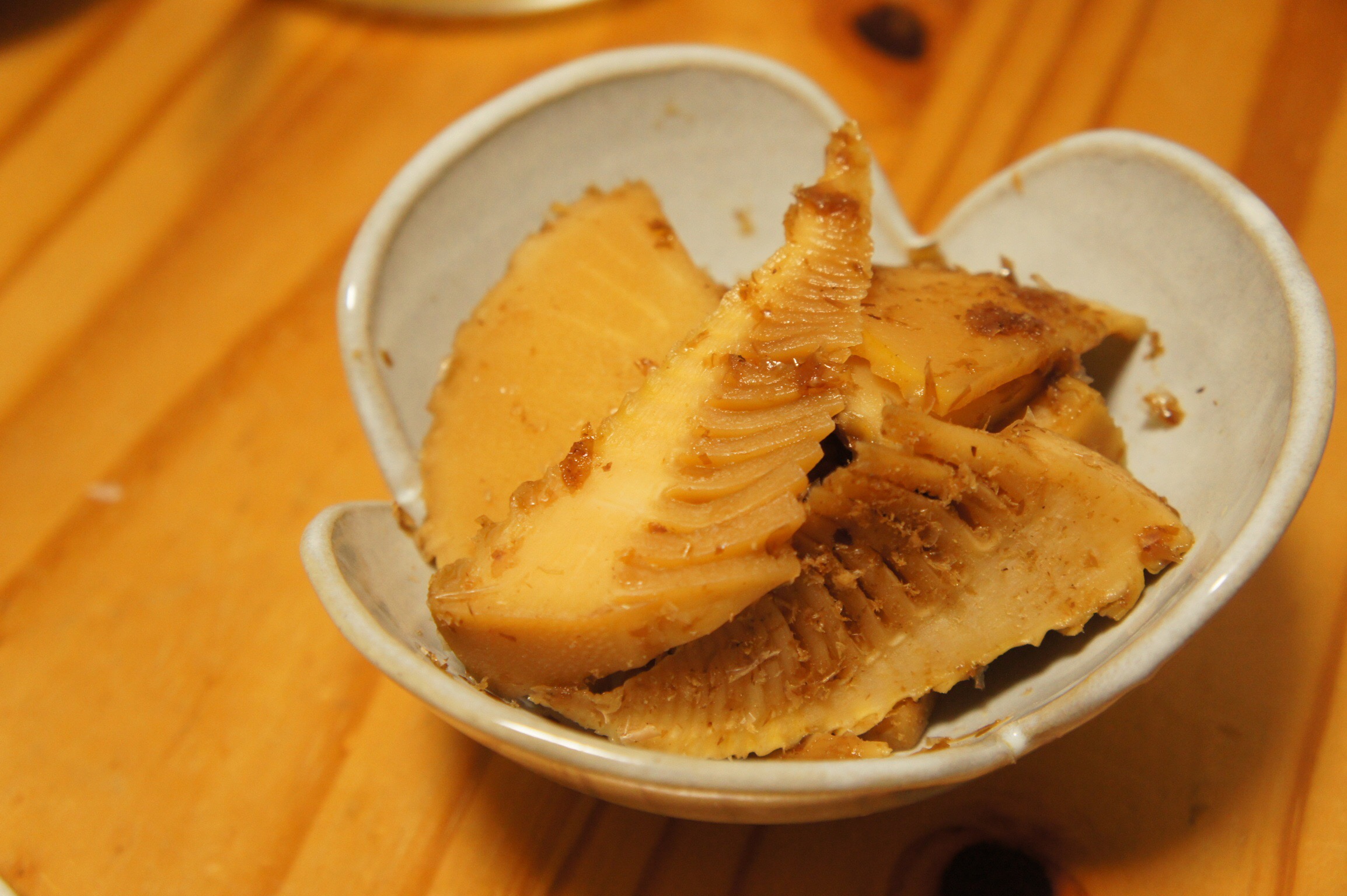 - 鍋に出汁を入れて煮立て、(A)の調味料とたけのこを加えて、煮立ってきたらアクを取る。