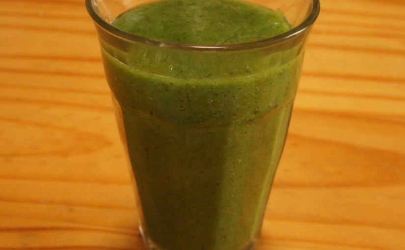 小松菜のスムージーは舌がピリッとするけど、栄養満点で緑も濃いスムージー。 小松菜 キウイ バナナ 水
