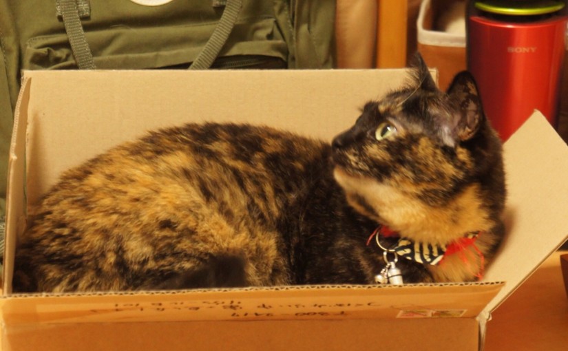 ビビにとってはちょっと小さいんじゃない?というこの段ボールを気にいったビビ。今度はこれが捨てれなくなってしまった。視界に段ボールが増えていく〜