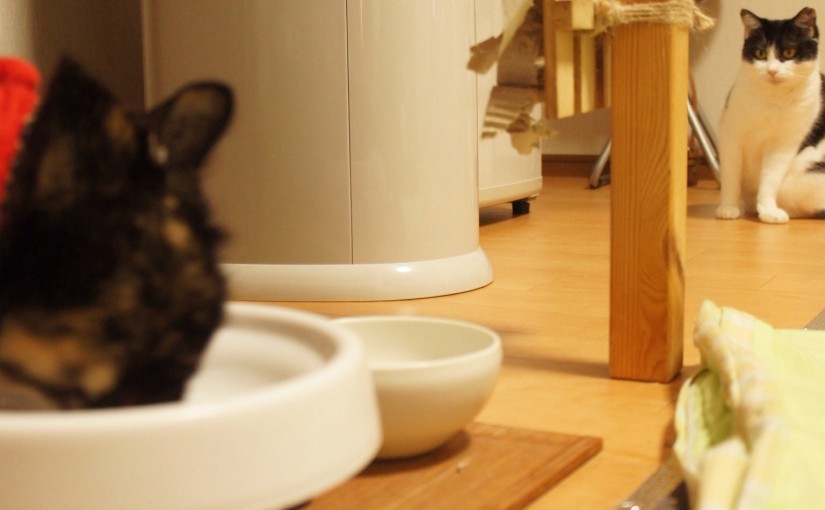 少しづつ餌を食べるビビの餌を食べようとしていたハレちゃんに躾をして、ビビが食べてる間は近づかないようになってきた! ビビが食べている間、はじめは5粒くらいを間隔を開けて私から直接あげるようにしていた。それで…