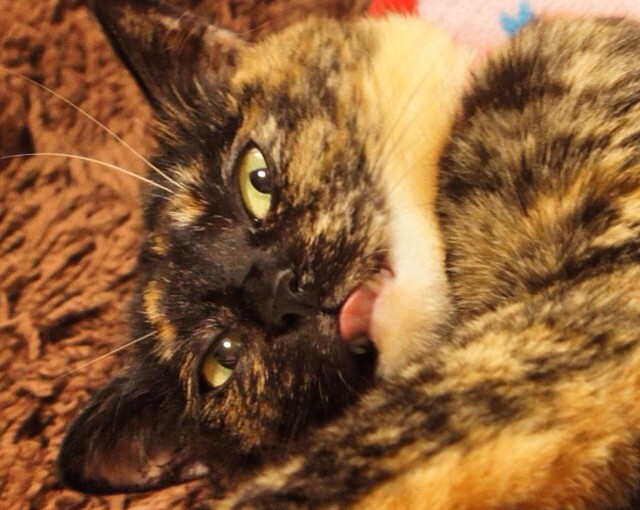 ビビ発のベロんちょ祭り。my365繋がりのhokke ちゃんがビビの写真を見て始めてくれた!いっぱい繋がるといいな。 #tortietude #さび猫 #サビ猫 #cat #365cat #ベロんちょ祭り