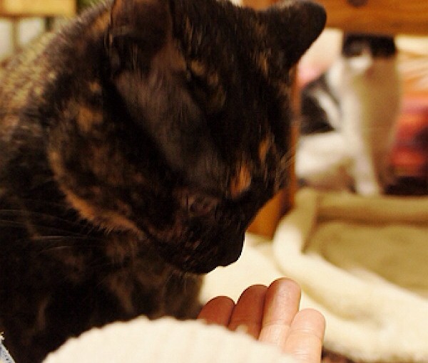 前は何かの影に隠れたり、テーブルの下とかでしか、くつろがなかったのに、最近は何かの影じゃないところでも寛ぐようになった! でもまだ、捕まえる、ということができないので爪はキンキンにとんがったまま。ハレも、おもちゃと…