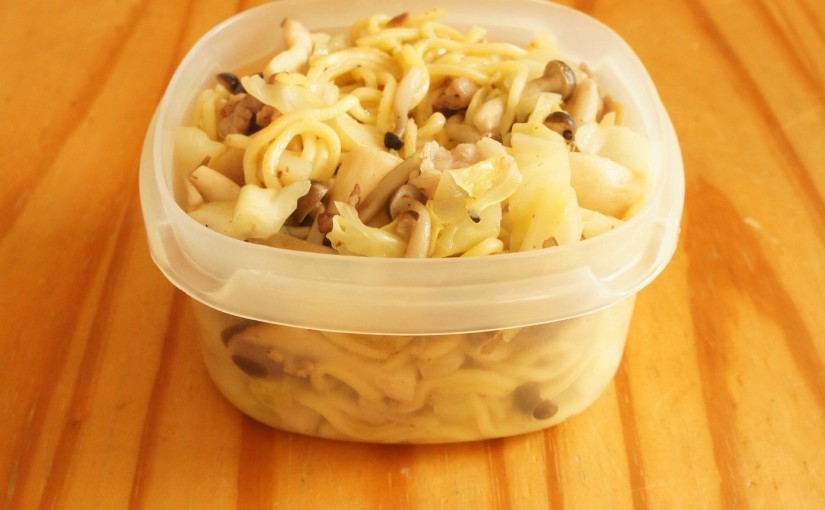 写真的には昨日とほぼ同じだね。でも、今日はとりもも肉で塩焼きそば。そして、昨日はちょっと麺がやわやわだったので、今日は麺をほぐす前の状態でフライパンで焼き目がつくまで麺を焼いておいて、一度取り出し、とりもも肉と野菜…