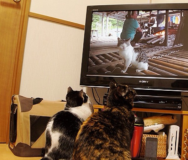 大好きな野生動物の番組をおとなしくじっと観ている2匹です。
