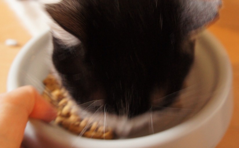 ハレちゃんがだいぶ人間に近づくようになって嬉しいっちゃ嬉しいんだけど、今度はビビが餌を食べている時、私が居るだけではビビの餌が守れなくなってしまった…。ビビはぽつぽつとのんびり食べる猫で、ハレはがつがつ。もうすでにハレは…