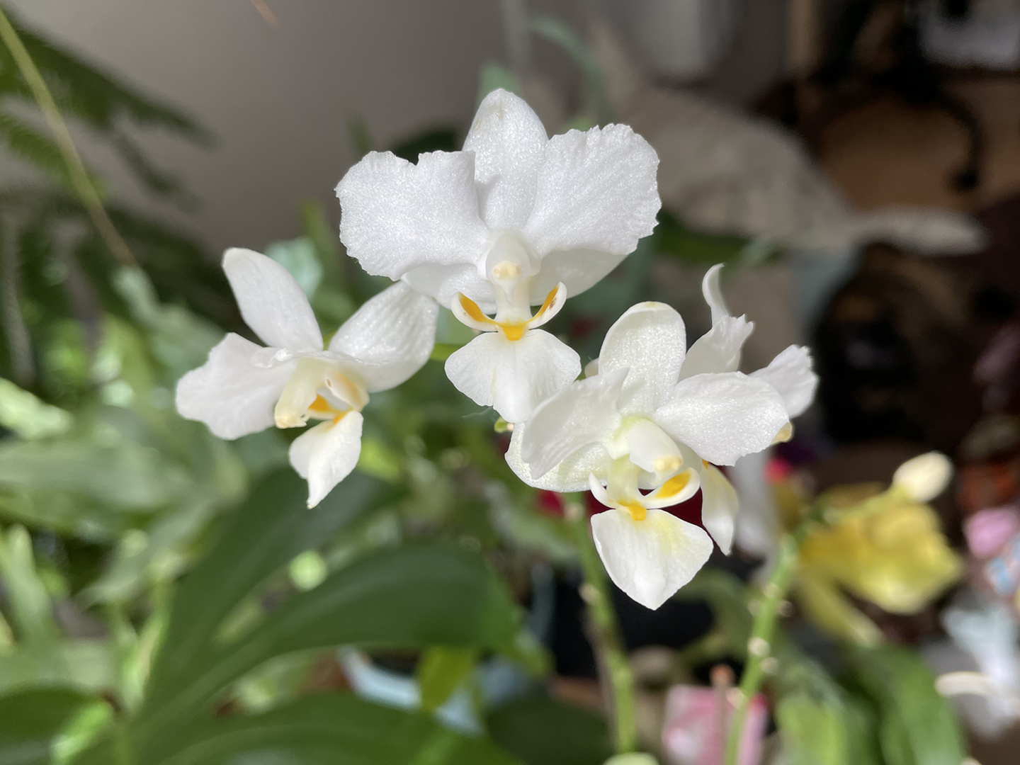 ホームセンターで見切り品で売ってたミニ胡蝶蘭。売られている段階でつぼみがあって、それが咲いた!蘭は長く楽しめるので、買うのはもっぱら見切り品だよね。