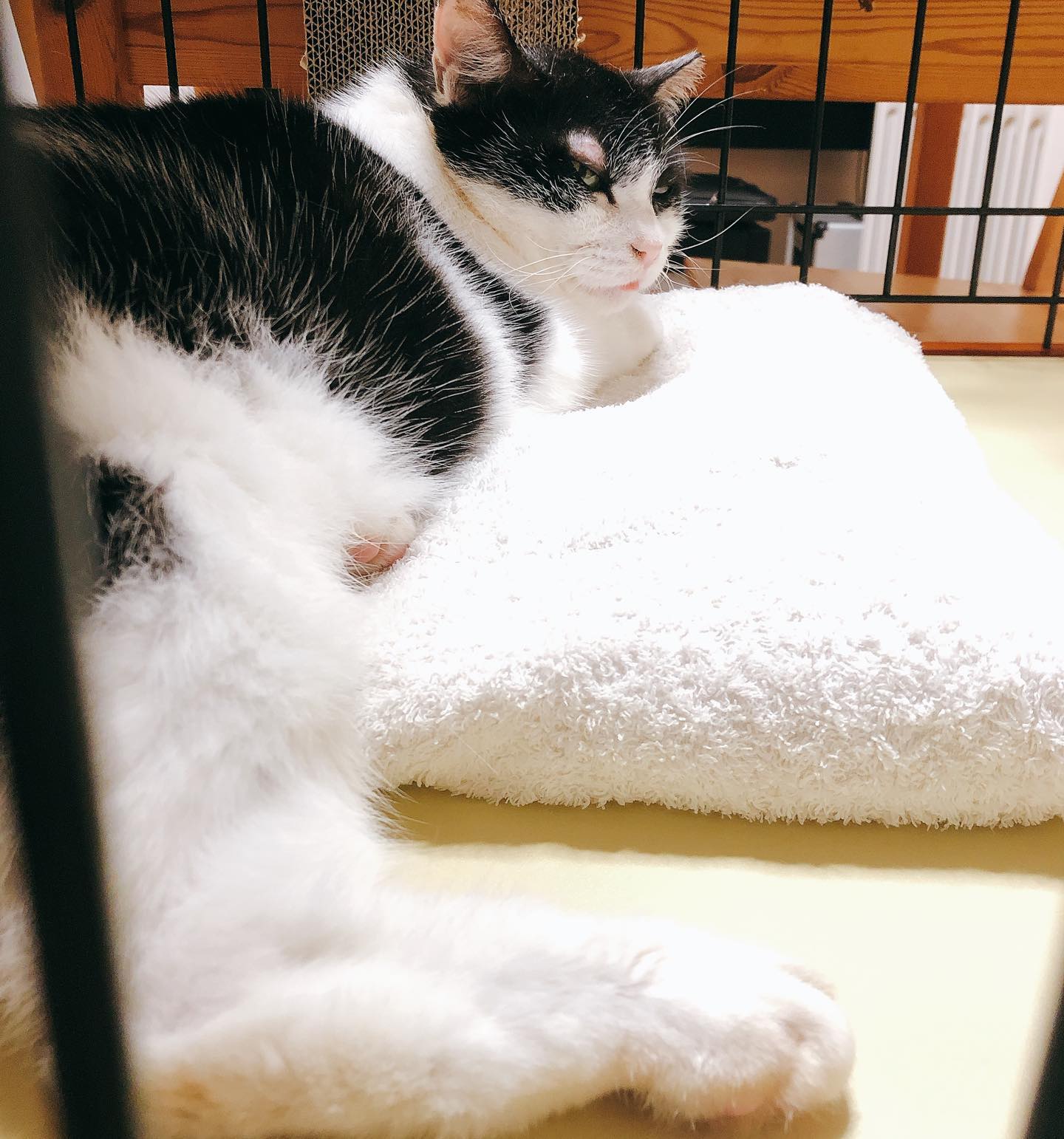 この投稿をInstagramで見る 真菌隔離は解除 真菌投薬17日目 ハレちゃんは真菌隔離は解除した代わりに、人間の寝室を隔離しました。とはいえ、解除後すぐにハレちゃんは人間のベッドでくつろい…