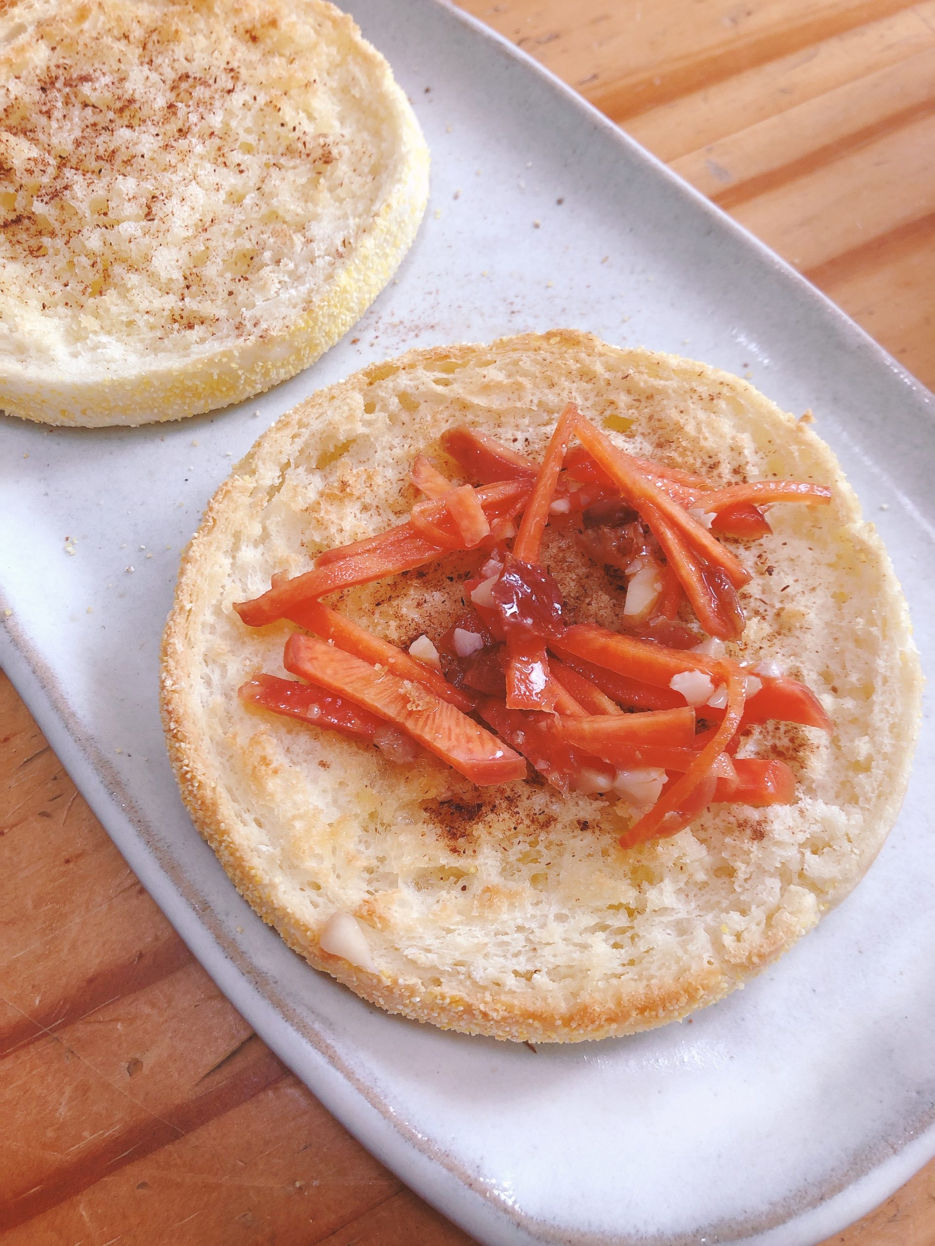 マフィンをトーストして、バターを塗りシナモンを振りかける。でその上によく作るキャロットラペを載せて食べたら、とてもおしゃれな味になったので作って食べてみて! 材料 にんじん…一本 くるみ レーズン 塩..ひと…