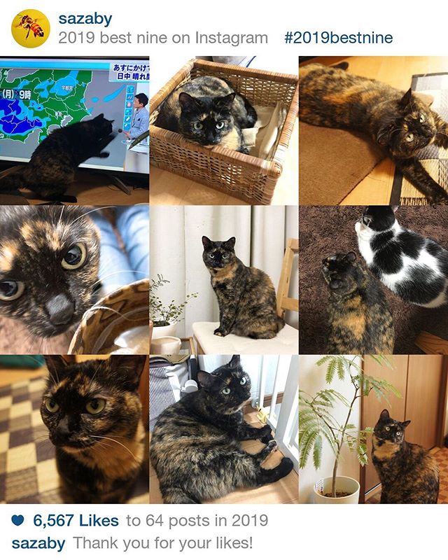 この投稿をInstagramで見る 2019bestnineやってみたら、ほぼビビさんだった。来年はハレちゃんも入るようにがんばろ! … #2019bestnine #cat #t…