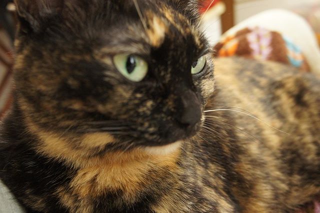 この投稿をInstagramで見る 今日はダラダラとテレビ見てたら、ビビさんお腹の上。手探りでシャッター押したらこんな感じ。手探りシャッターも楽しいね。 … #cat #tortietude …