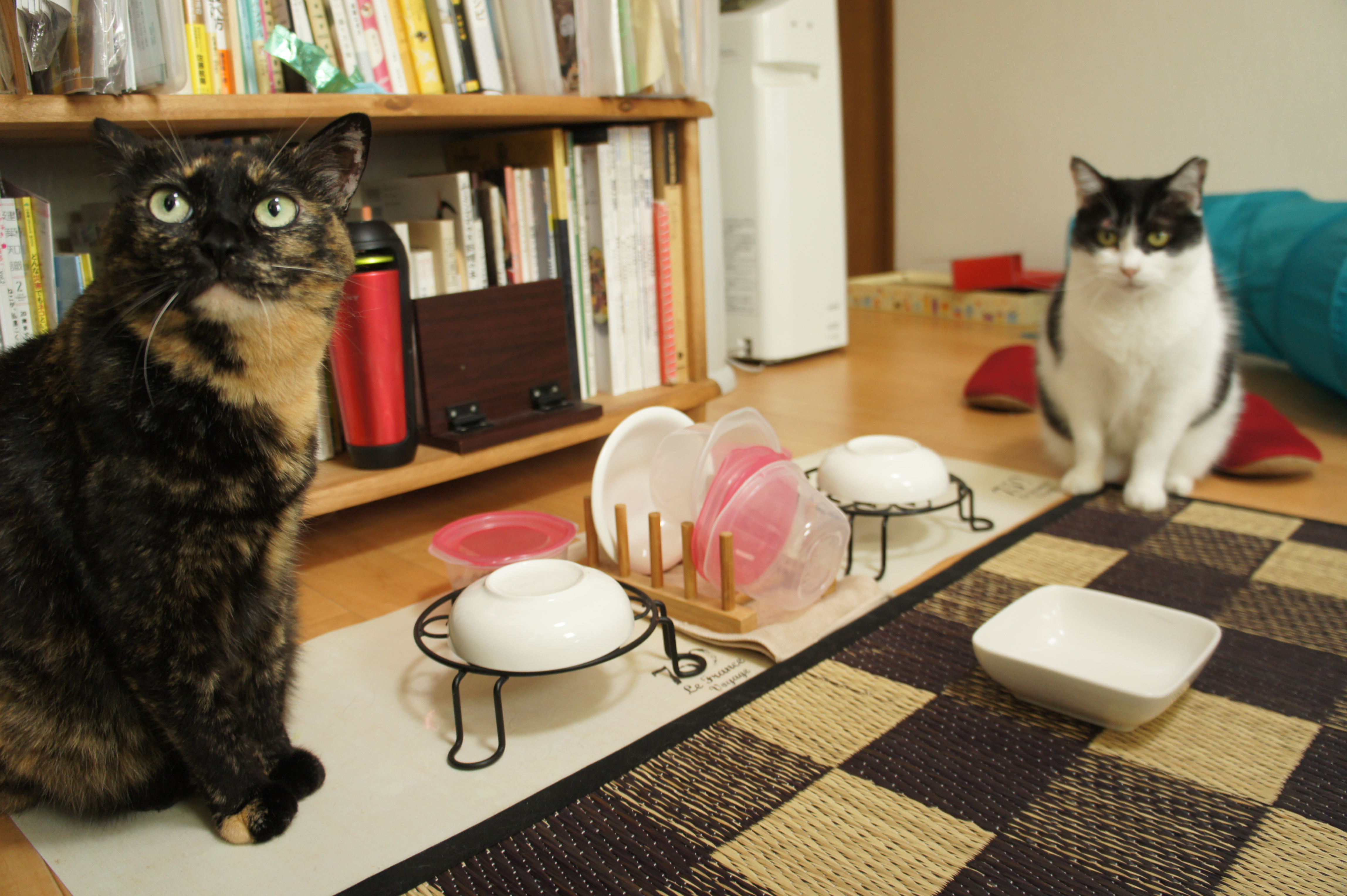 2人で朝ごはんの催促。目で訴えるビビ。 ハレちゃんはなんでベロでちゃうんだろう???
