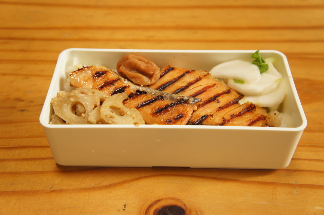 前日の登山用に買ってあった鮭の西京漬のお弁当。ご飯はもち麦入りです。 鮭の西京焼き 株の塩もみ レンコンのきんぴら 梅干し もち麦入りご飯