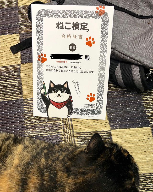 この投稿をInstagramで見る ねこ検定初級合格しました! 中級は残念ながら不合格…。 なんか、ねこの知識というより日本語の読解力が問題な気がしてる。純粋な日本人だけど…。 … #ねこ検定…
