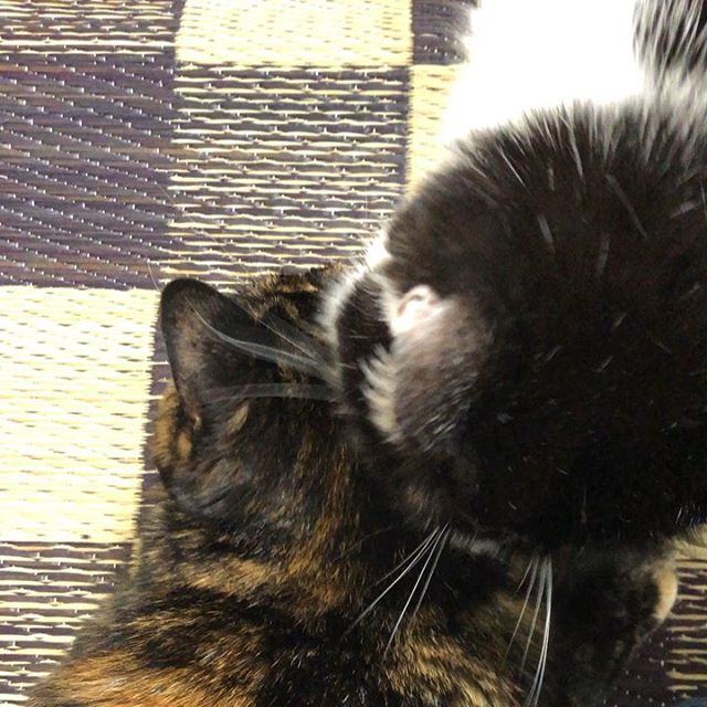 この投稿をInstagramで見る ハレちゃんビビをグルーミング。ハレも頭をグルーミングしてほしいのに、ビビは無視。ビビってちょっとケチなの? … #cat #なかよしねこ #tortietu…