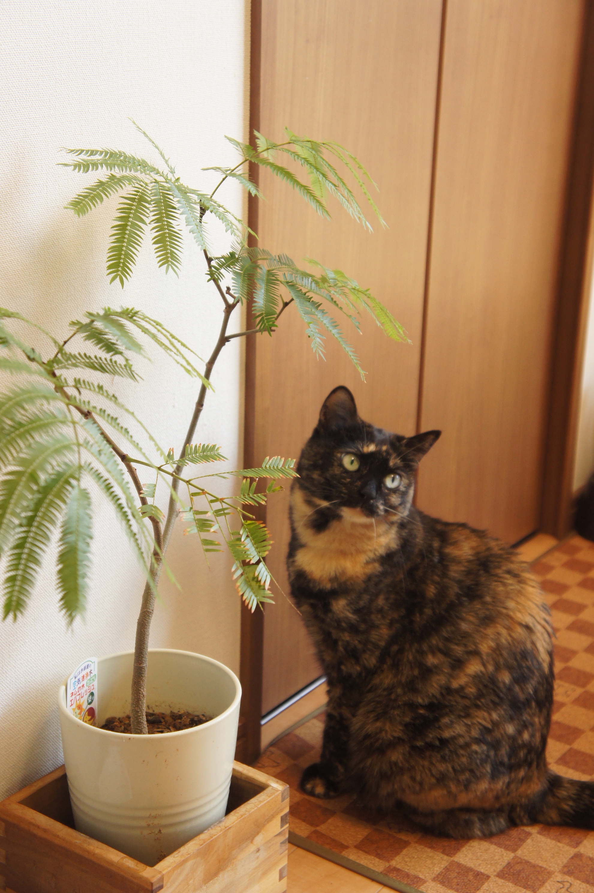 見切り品で500円で買ったエバーフレッシュ。元気な葉が出てる。一階のビビいたずらポイントに置くと、ビビがいたずらするんで、二階に置いたらいたずらしなくなった。やっぱり場所なんだな。
