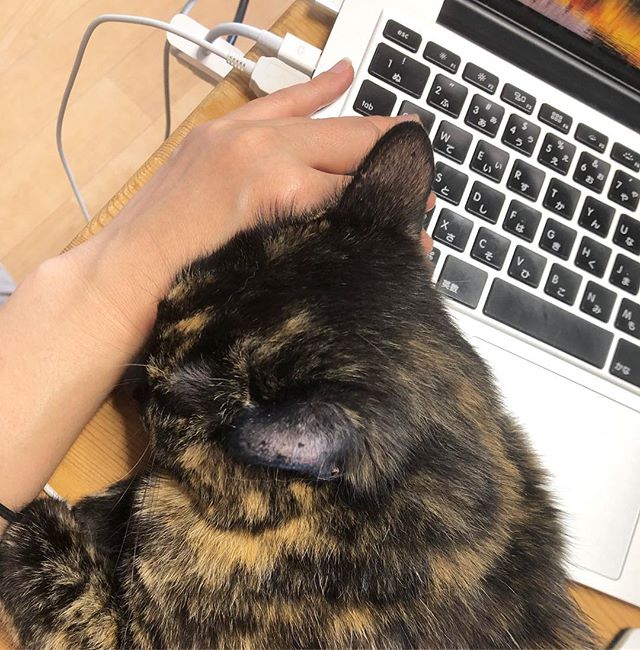 転職して家で仕事する事が増えました。そして、所定位置の左手がビビさんの枕。案外このまま仕事ができる!ビビさんさすがです。 #cat #tortietude #さび猫 #サビ猫 #サビ猫マニア #サビ猫ラバーズ #サビラバ…