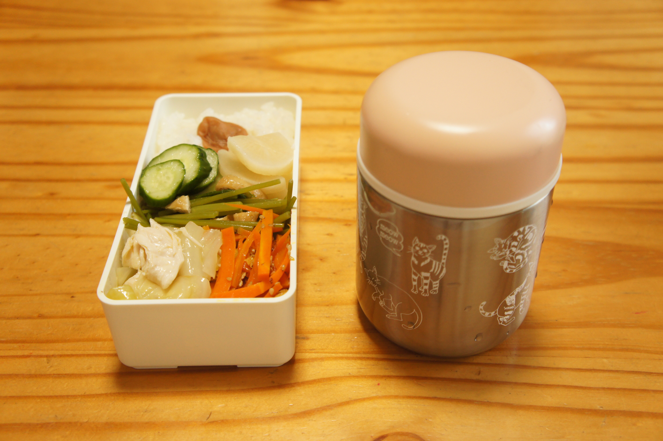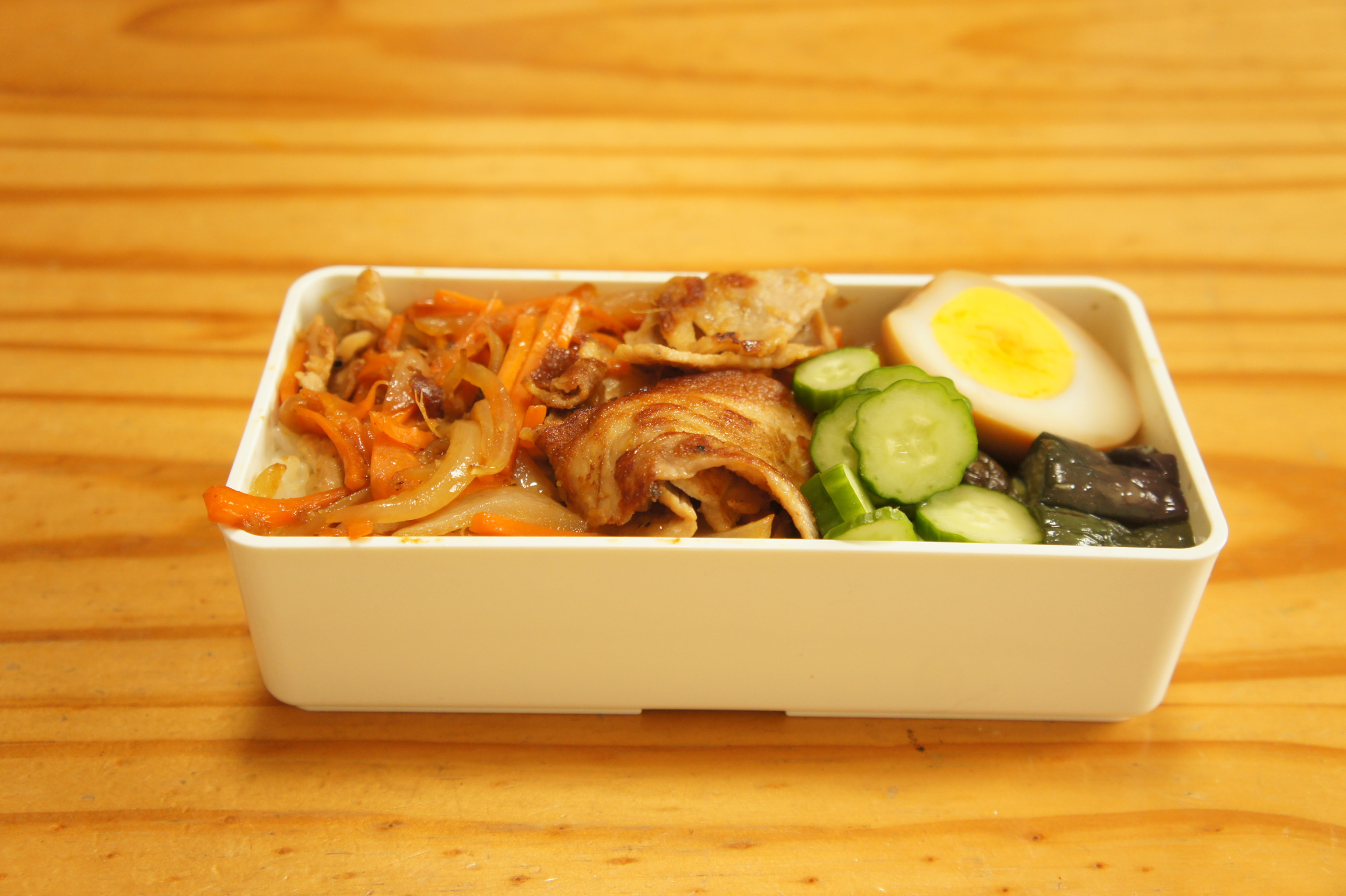 今日は、昨日の豚の生姜焼きに人参も入れてみました。 人参とたまねぎの豚の生姜焼き 茄子の揚げ浸し きゅうりの塩もみ 味付け卵 ご飯